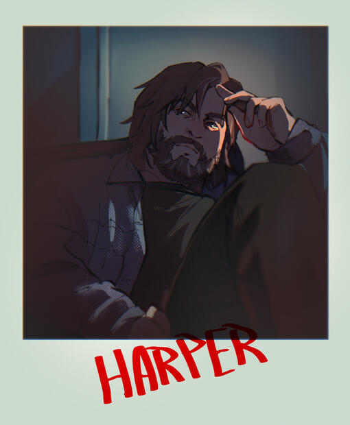 Harper is the main-character of STARVING. He is a hard-working man but beneath his humble demeanor lies trauma, insecurities and shallow shell of what he used to be. After he surived a traumatic car crash with his friend Kieran, he started to obsess over her in order to deal with his trauma and fear of losing her. Every now and then he catches himself staring at her and thinking about her alone in his bed.